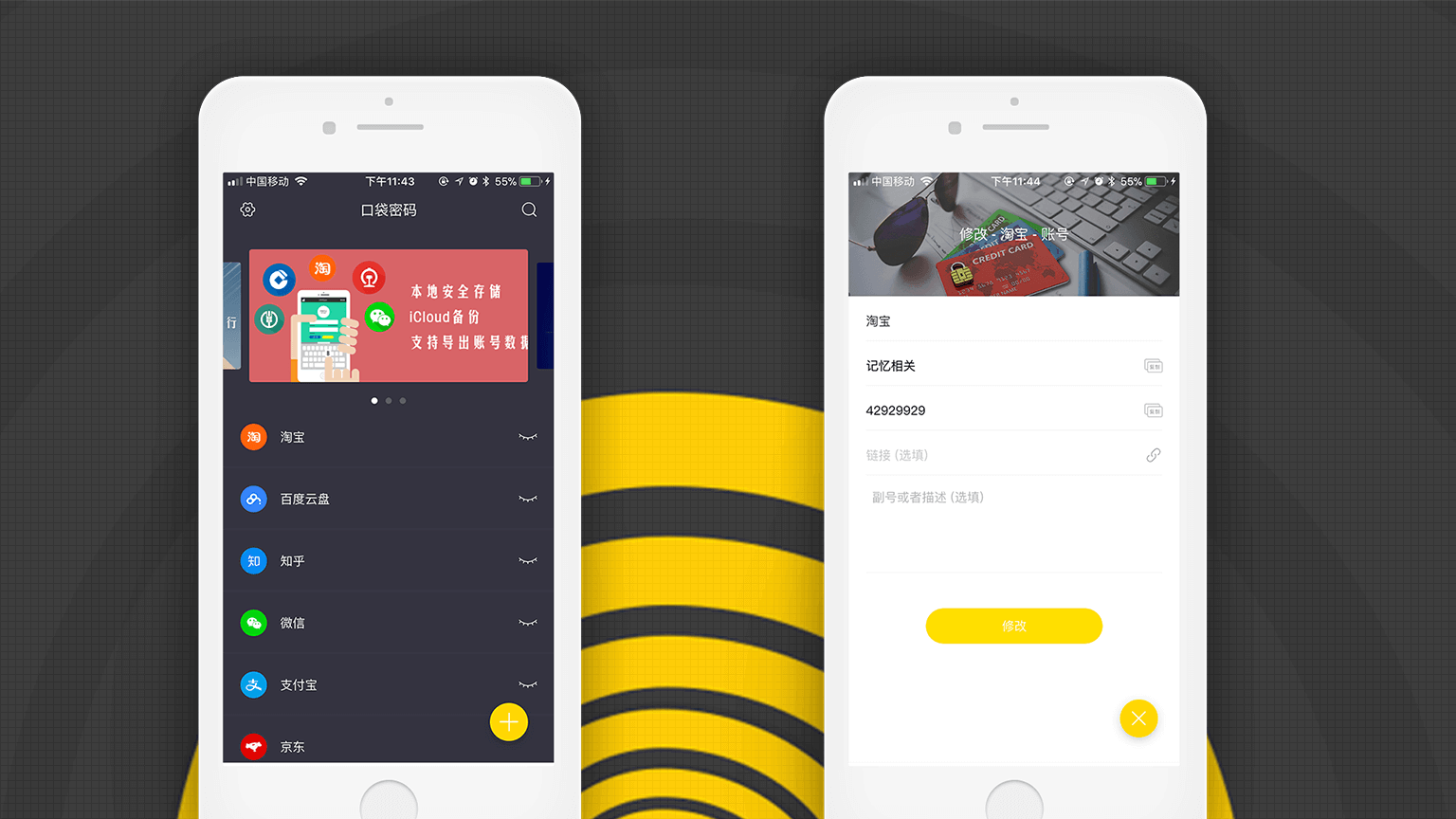 - iClound自动备份,换手机自动同步回来,无须担心密码丢失