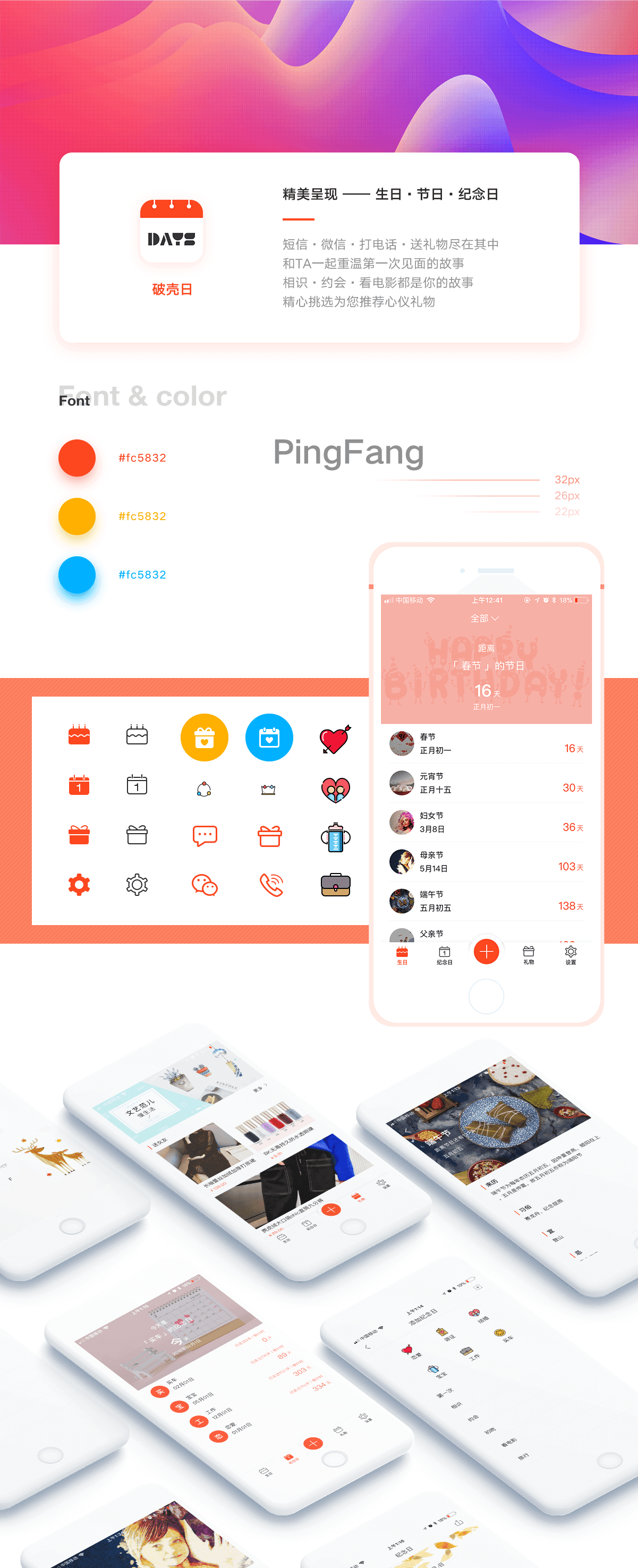设计和产品的理念有时候是相悖的,我的初心就是希望破壳日设计干净明晰,由于自己对界面的一些细节有些强迫症,经常会因为一个图标、界面更改10多次,也就个人的作品有这样的时间成本让我不断打磨。产品中参考了生日管家,希望可以做的更好,结果还算满意,当然还有很多不足。