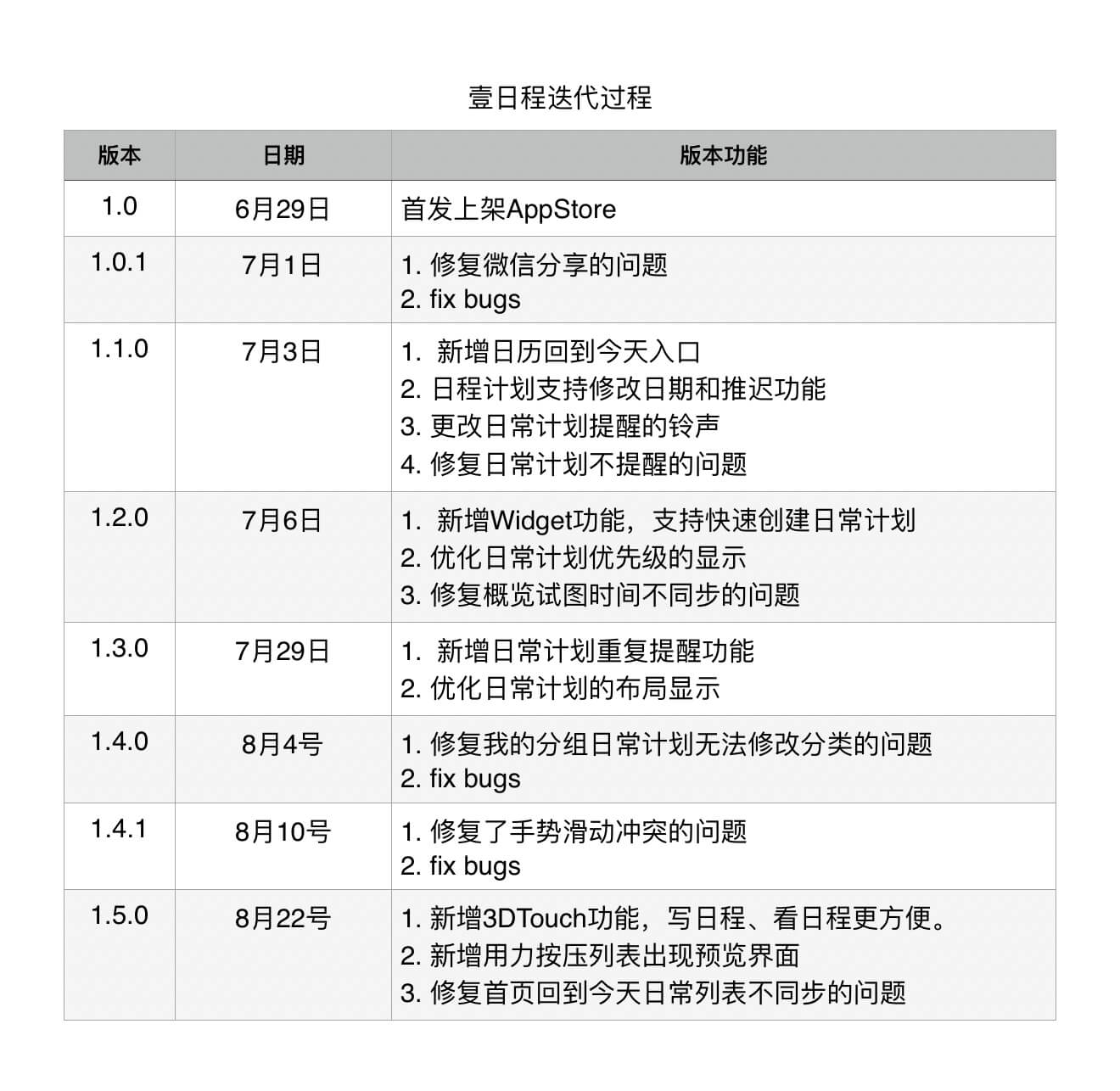 壹日程于6月29日上架到了 App Store ,至今2个多月的时间,版本迭代了8次。期间最佳排名为效率类付费榜前100名。而上架之后,收到用户的反馈与来信也变成一件非常有趣的事情,也正是通过这个渠道让我不断的去改进优化产品,结识到了不少用户。