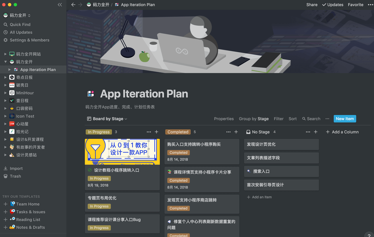最近喜欢上了Notion和Eagle,Notion简直是知识库、任务管理的神器,轻松管理自己的App开发进度和任务,平时自己设计的内容太多了,用Eagle轻松管理自己的素材库和设计作品,大大提升了工作效率。