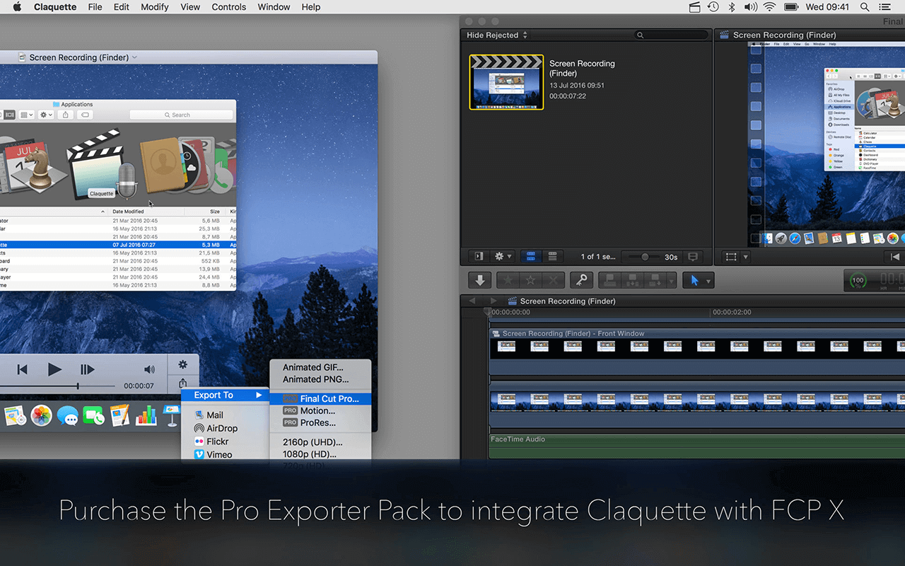 Mac下一款实用的录屏软件,可以无缝记录Mac的屏幕、麦克风和摄像头,编辑记录并分享他们作为动画GIF、PNG或电影。通过购买临出口商包,还可以Claquette集成到Final Cut X 中的工作流程。