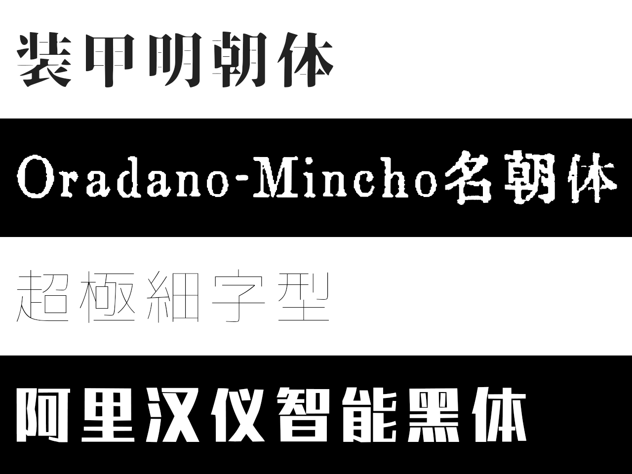 日本文字爱好者根据思源宋体调整修改而来,与思源宋体最大的不同在于极细的横线处理,虽然是日本字体,但是完美支持繁体中文。