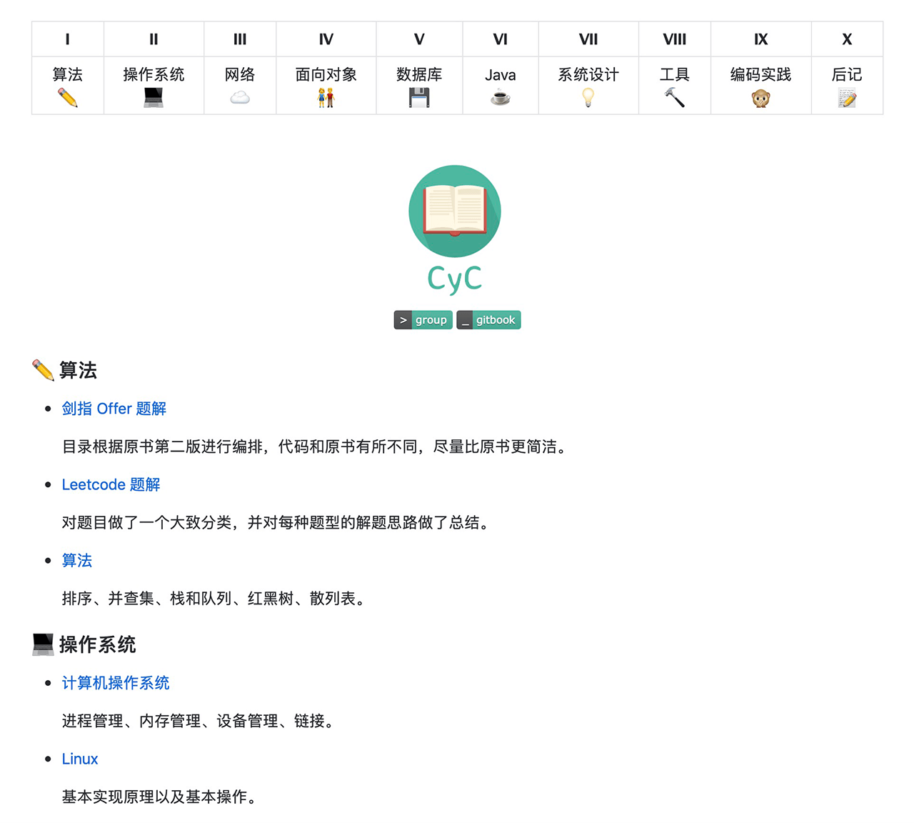 GitHub地址:https://github.com/CyC2018/CS-Notes