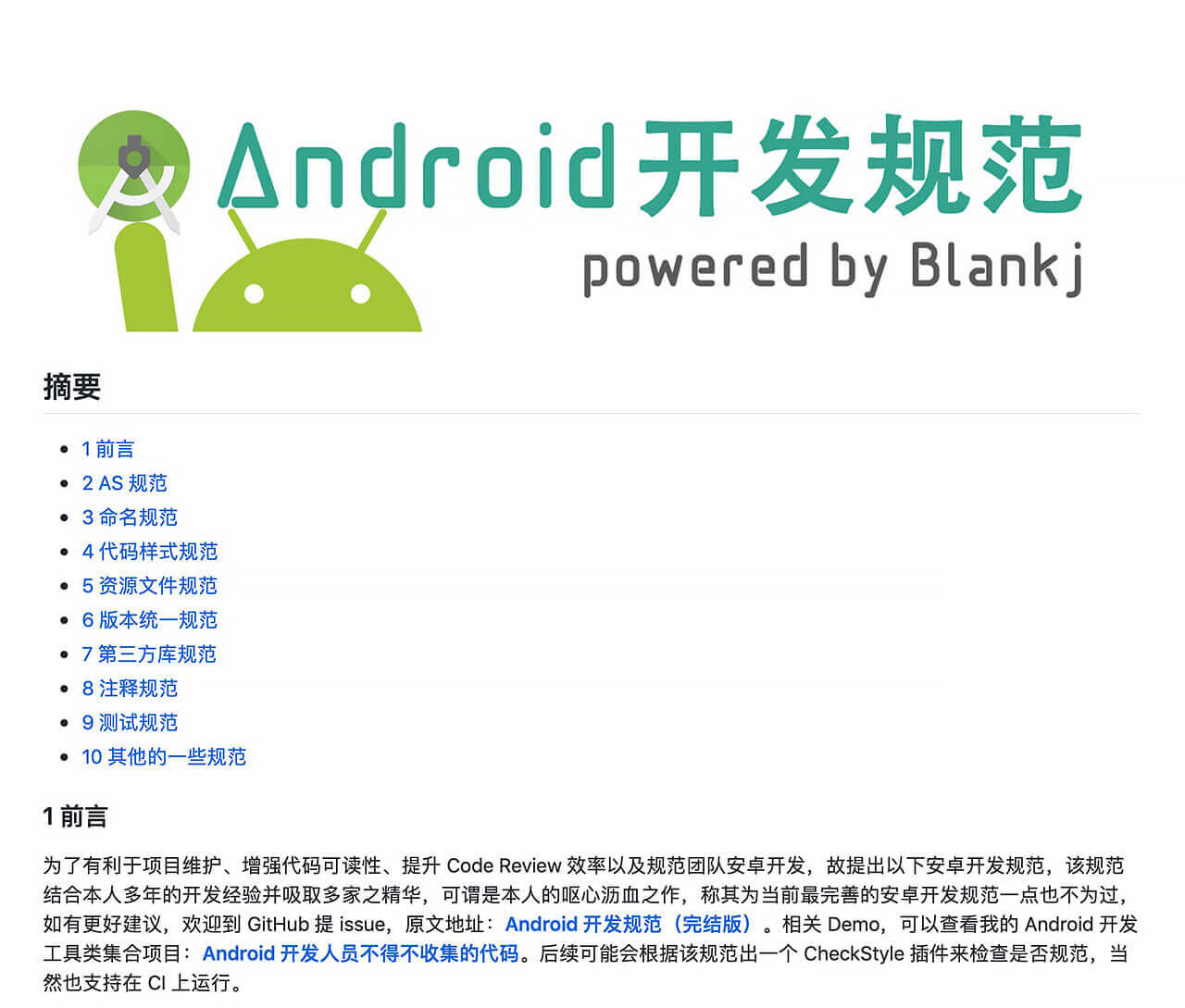 是目前最完善的一份安卓开发规范总结资料,为了有利于项目维护、增强代码可读性、提升 Code Review 效率以及规范团队安卓开发,故提出以下安卓开发规范。