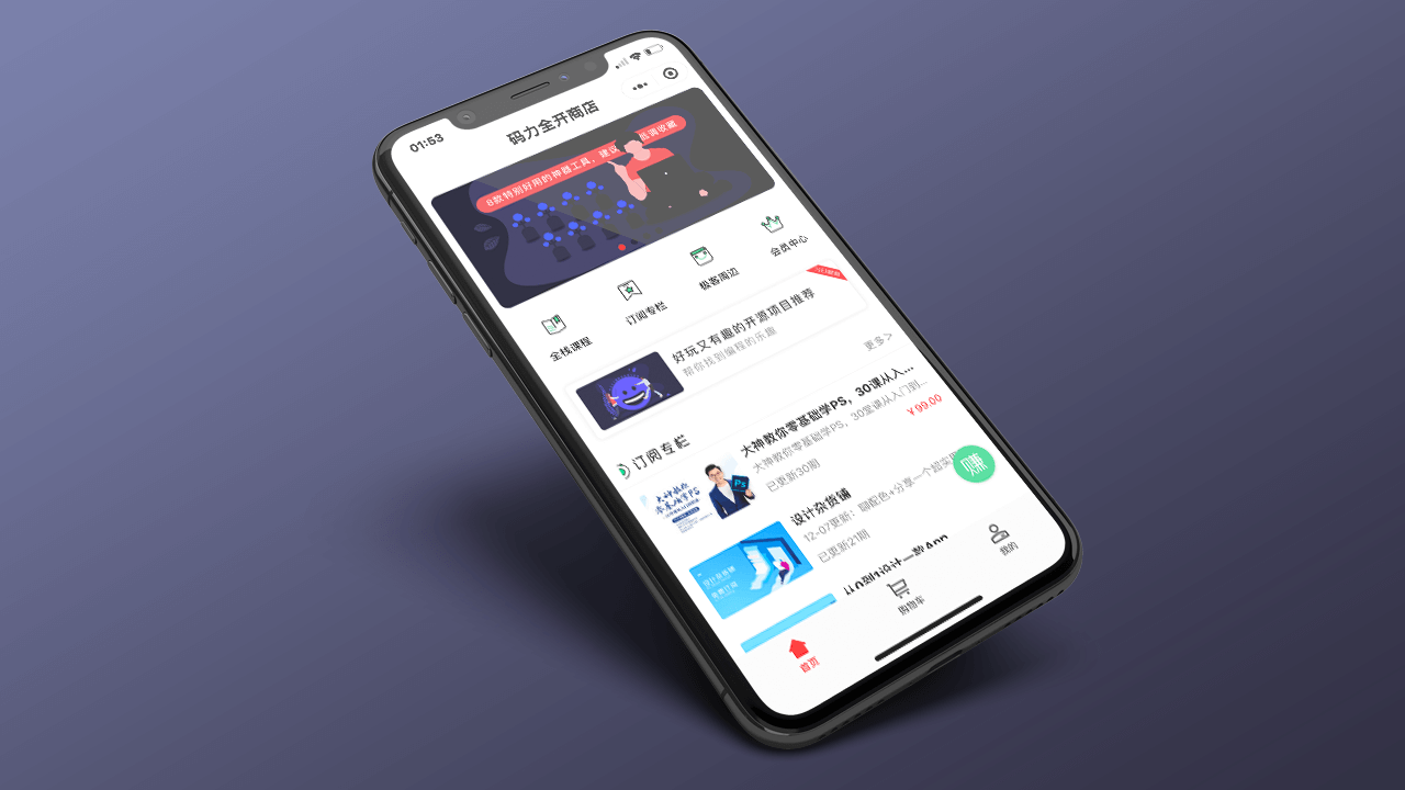 码力全开商店目前内容主要分为三大块:知识专栏、全栈课程、极客周边,更多关于小程序的介绍阅读码力全开商店小程序。