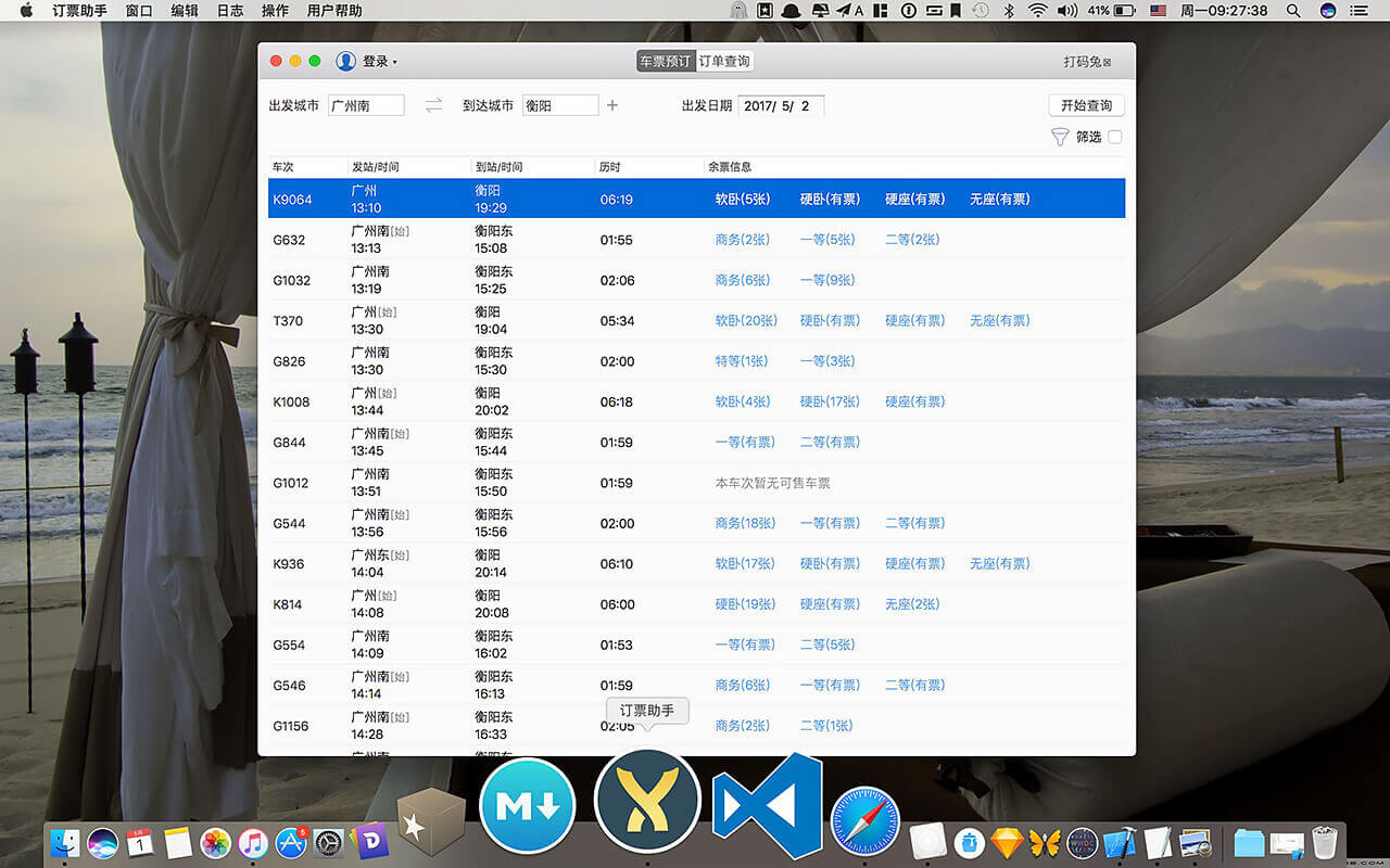 由@fancymax开发的Mac版12306 订票/抢票 助手。