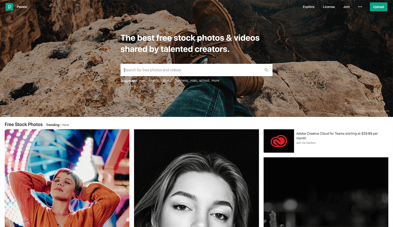 Pexels 是由全球顶级摄影师上传并分享的大尺寸、高品质免费图片素材网站,所有照片都有很好的标记,可以通过搜索查找,也可以在发现页面发现。Pexels 的所有照片均可免费用于个人和商业用途。