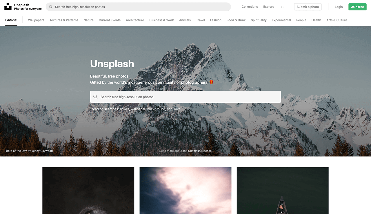 Unsplash 是一个拥有100,000多名摄影师和创作者的社区,这些慷慨的摄影师社区为你来带超过850,000张免费高分辨率照片,同时每天还有数千张照片在不断更新。在 Unsplash 你可以找到你想要的图片,也可以通过你喜欢的图片去关注摄影师获取更多令你满意的照片。