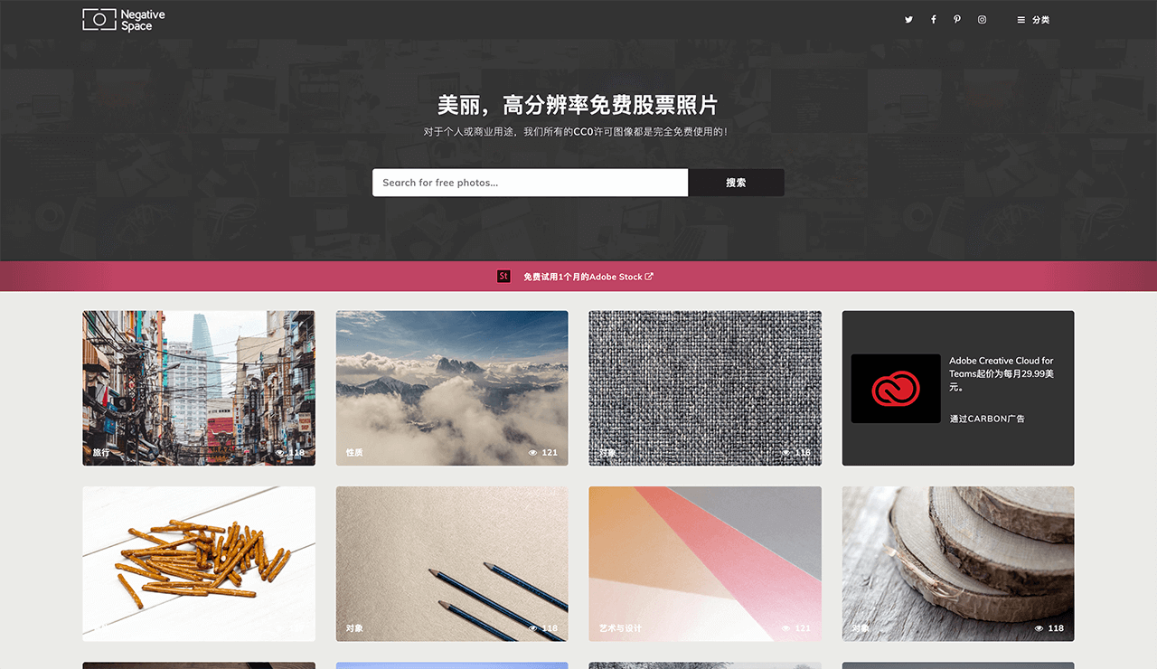 Negative Space 是一个为摄影师提供与世界分享他们作品的平台,也是一个为浏览者提供免费、高质量、高分辨率图像下载的平台。网站上所有照片都是免费的,你可以通过网站分类以及热门标签查看浏览照片,也可以通过照片颜色分类来浏览照片,除了在网站搜索下载照片外,你还可以在网站注册留下你的邮箱来获取 Negative Space 最新免费照片。
