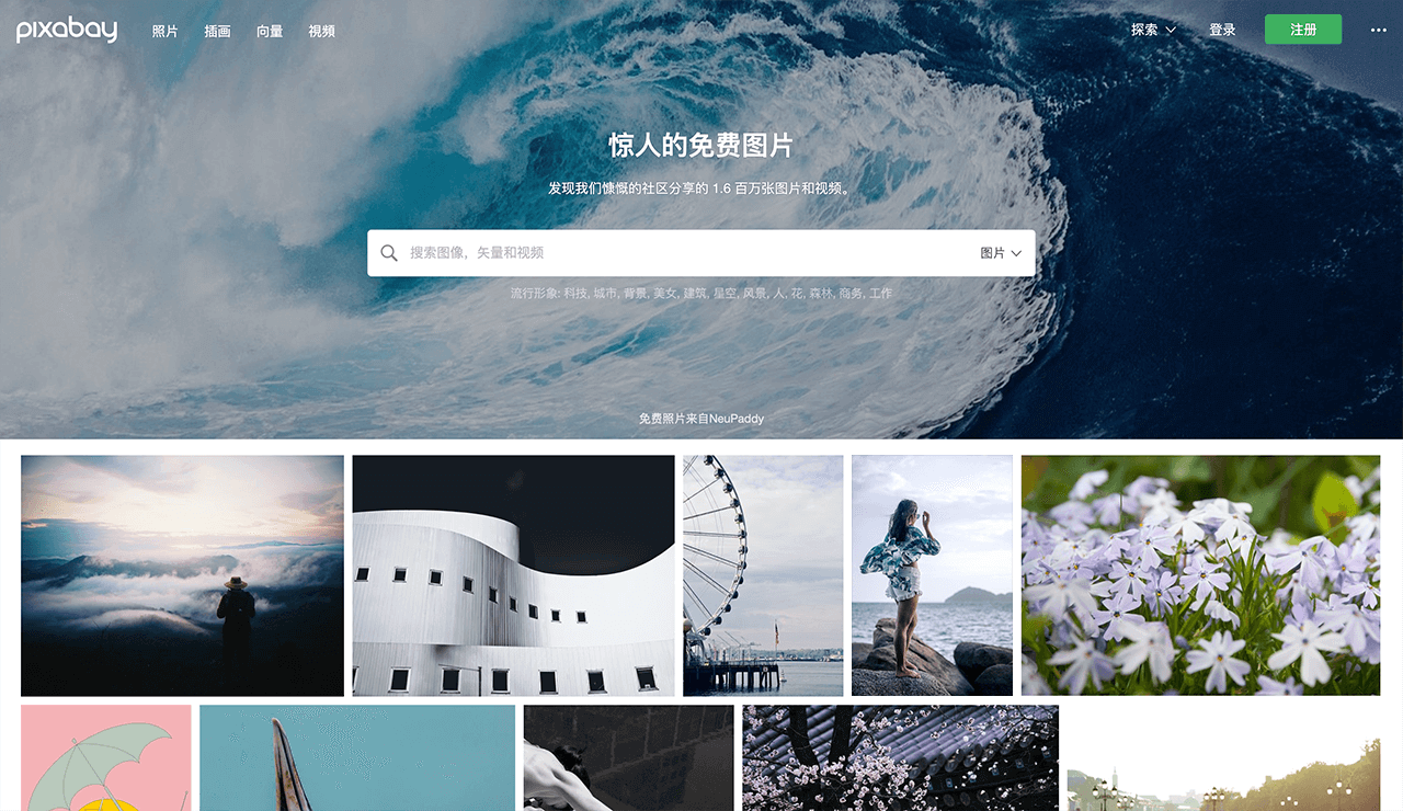 Picabay 拥有超过1.6百万张高质量免费图像、矢量和视频素材,你可以复制、修改、转发等方式使用这些图像,甚至用作商业用途,无需申请许可,也无需支付版税。