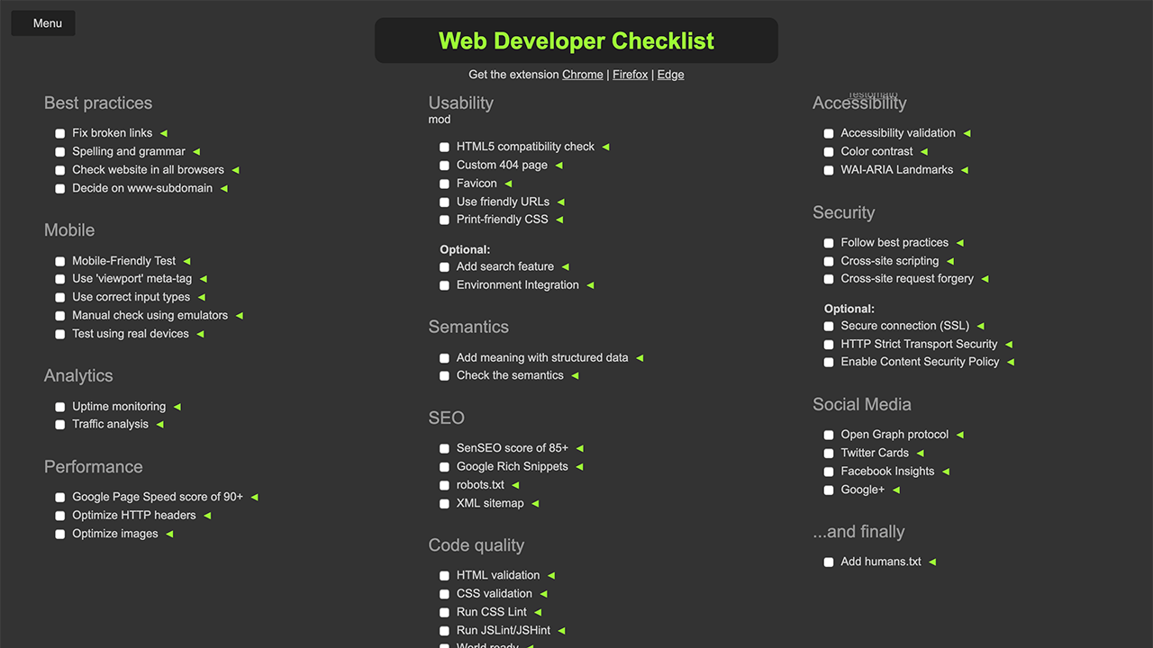 下载地址:https://chrome.google.com/webstore/detail/web-developer-checklist/iahamcpedabephpcgkeikbclmaljebjp