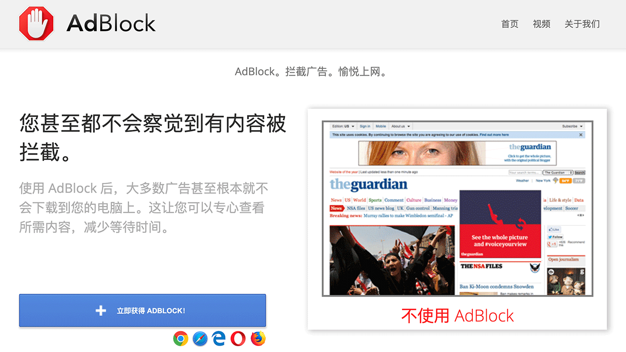 NoAds是一个5星广告拦截插件,提供了最完整的adblocker过滤列表,安装它可以阻止恶意软件、拦截广告、提升浏览速度,想必每一个人都会喜欢~