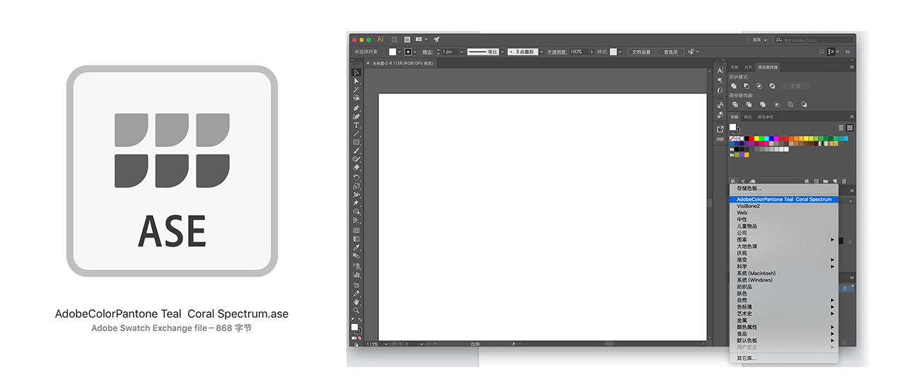 ASE文件是Adobe Illustrator的配色文件,首先你需要先将该ASE文件拷贝到Adobe Illustrator安装目录下的色板文件夹中(大致路径:Adobe Illustrator/Presets/zh_CN/色板),然后打开Adobe Illustrator、窗口菜单勾选色板、找到色板,在色板左下角点击“色板库”菜单,找到你刚才下载的配色文件,点击它,你就得到了该配色,尽情使用吧。
