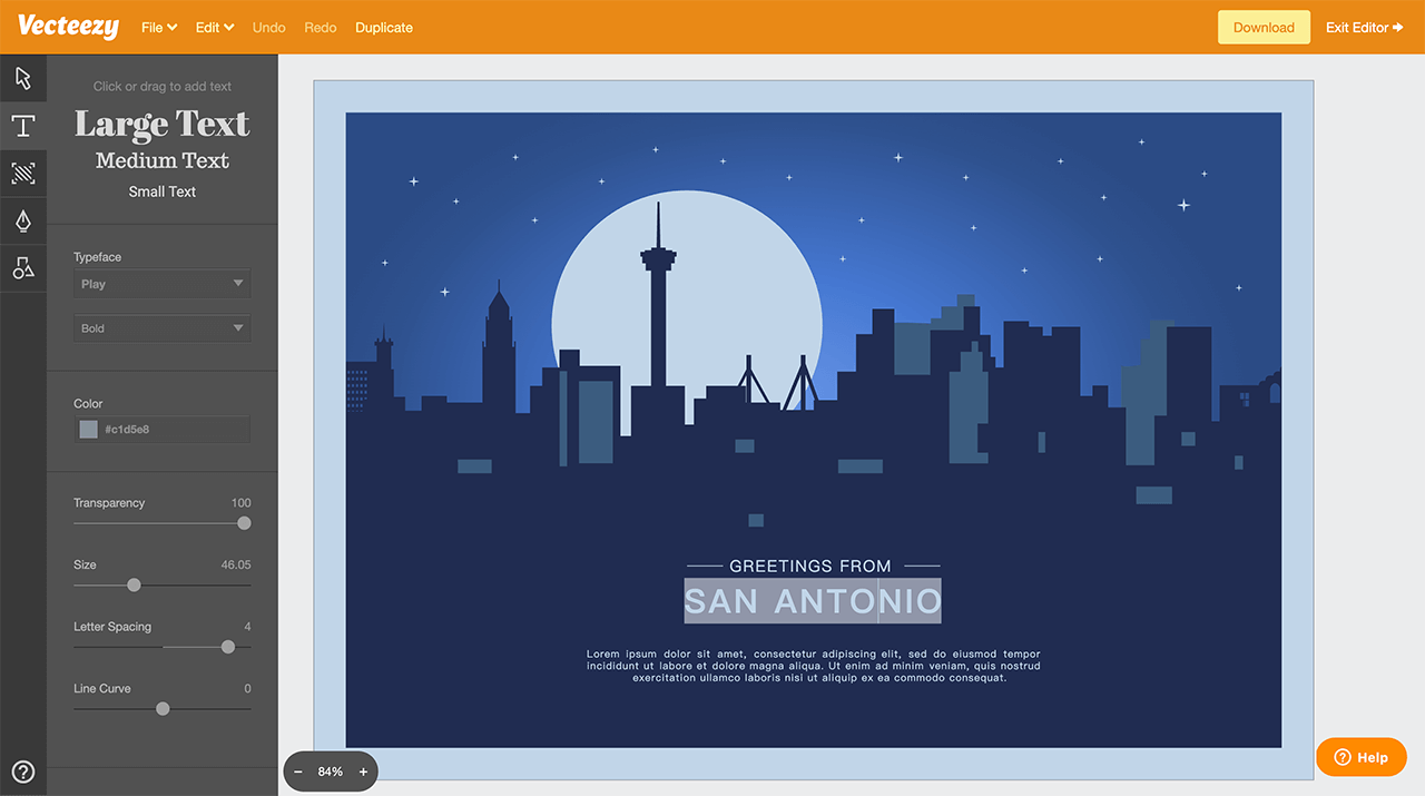 Vecteezy除了提供素材外,还支持在线编辑素材,在下载素材之前可以对素材尺寸、颜色、文字、图形等内容进行自定义编辑。