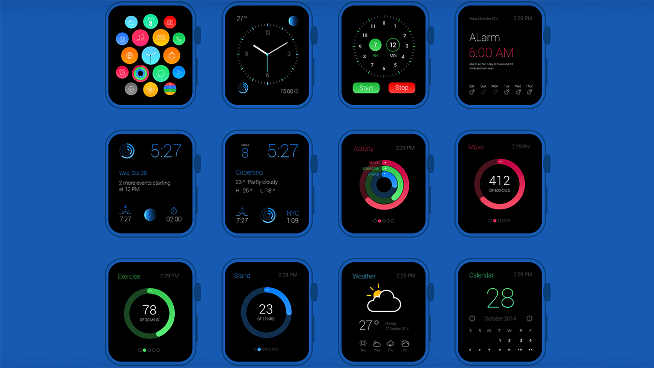 适用于设计人员和开发人员的免费GUI Apple Watch,下面是在Apple Watch表盘内的一些设计