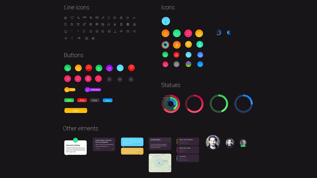 下面是几种不同类型的元素,有按钮、图标、加载进度等等。