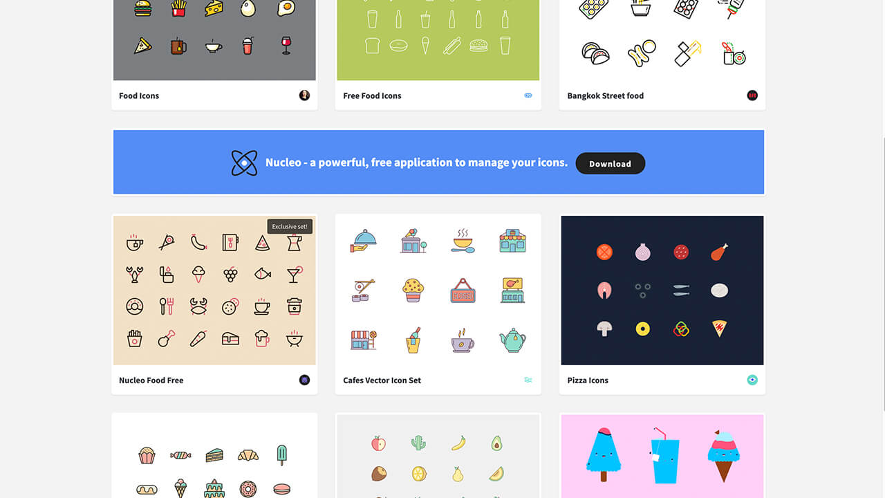 搜索框内输入food,可以搜索到食物相关的图标资源,每个都很好看。