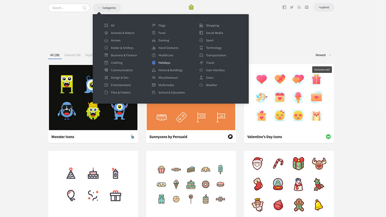 我们也可以选择分类目录,这里提供了28个项目分类,比如选择Holidays分类,也可以在右侧选择最新和热度进行筛选。