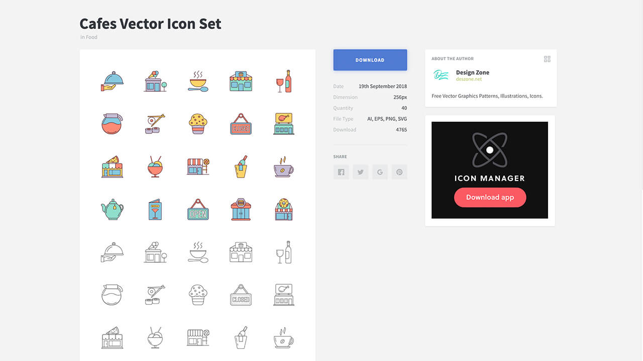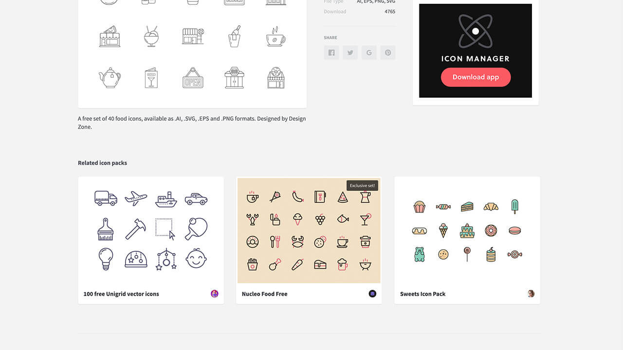 IconStore网站经过精心挑选,看得出图标都颇有水平,而且大多是矢量格式(AI/SVG/EPS),可以免费商用,无须标注出处。