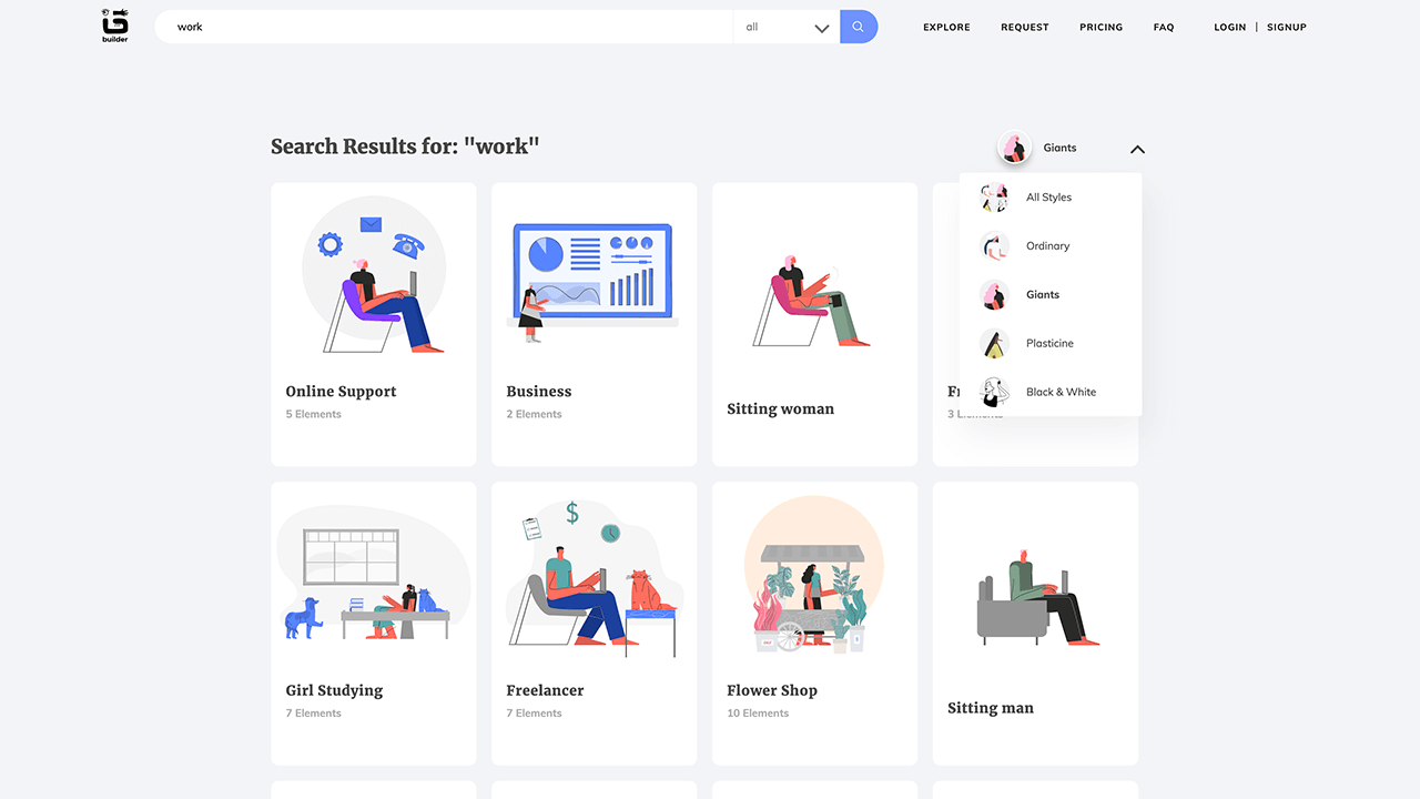 搜索框下面提供了一些搜索关键词,你也可以直接在搜索框输入你想要的插画关键词,然后就可以搜索出不同风格的精致插画素材。