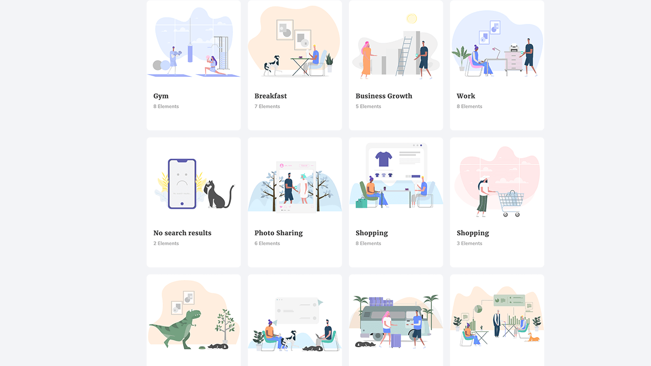回到首页往下滚动可以看到更多的插画素材,非常丰富,质量也很高。