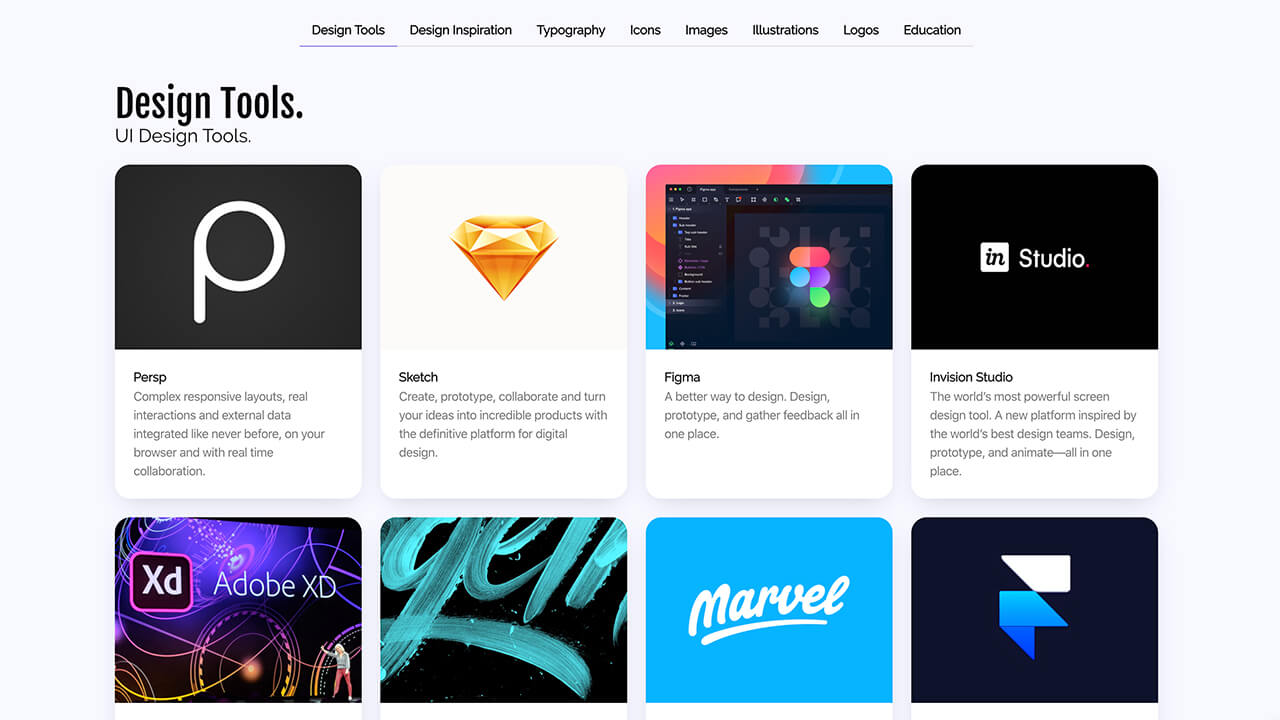 第八个Designer,这是一个针对设计师的资源,它里面有设计工具、设计灵感、图标、图库、插画、教育等内容。