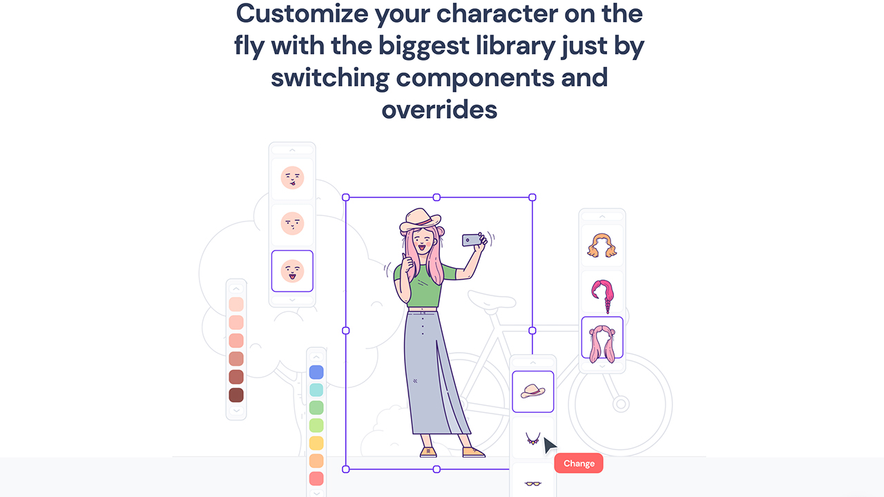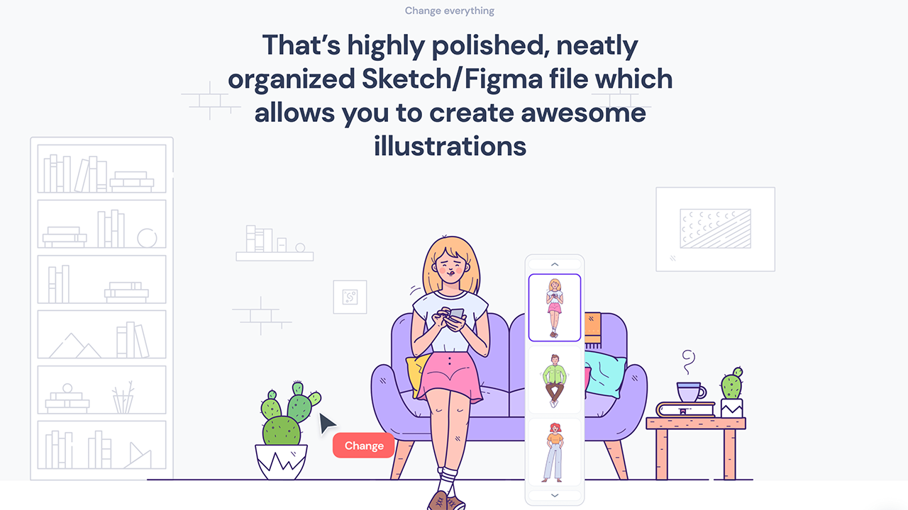 打开网站可以看到它提供了Figma和Sketch格式的插画构造器,使用这两种格式可以自由定义组合想要的插画。