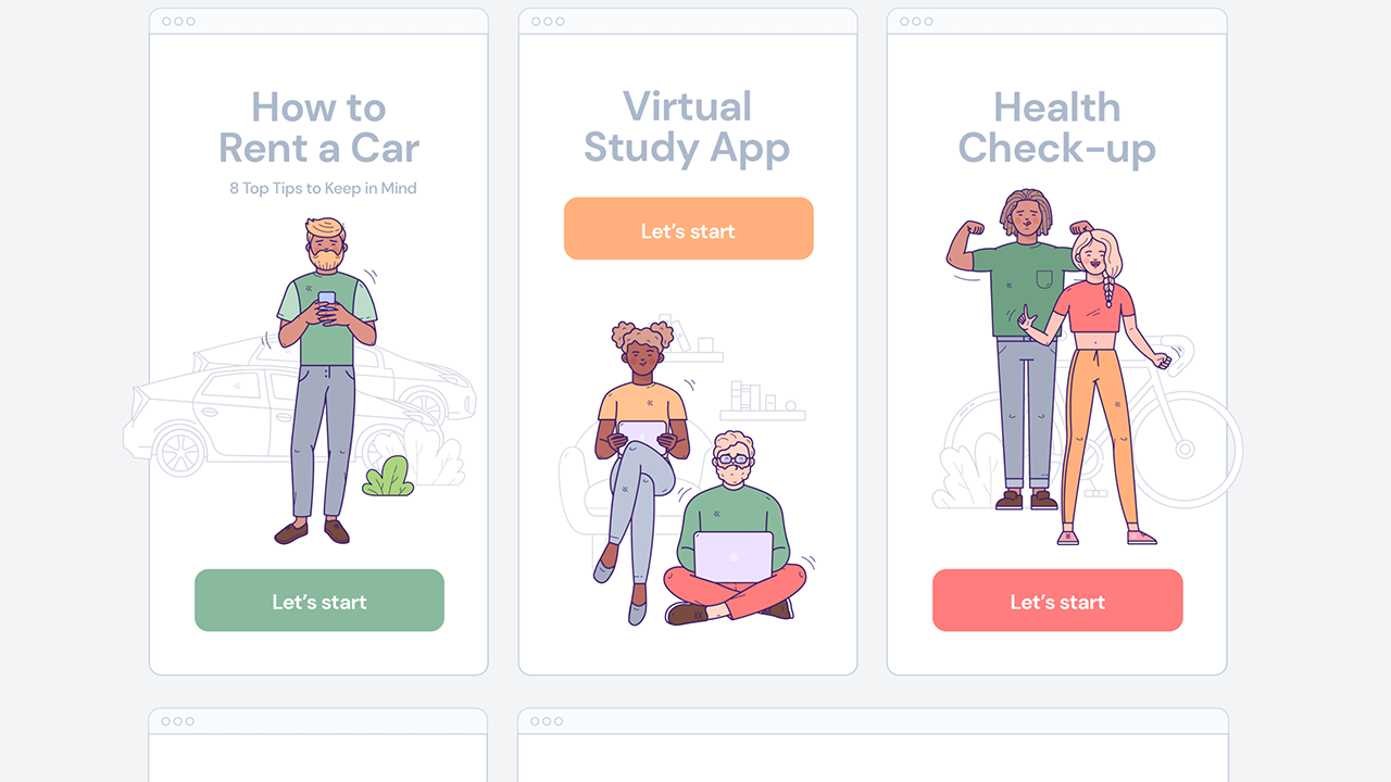 创造出的这些人物角色插画可以用在移动端或Web项目中,特别适合一些移动端产品的启动页。