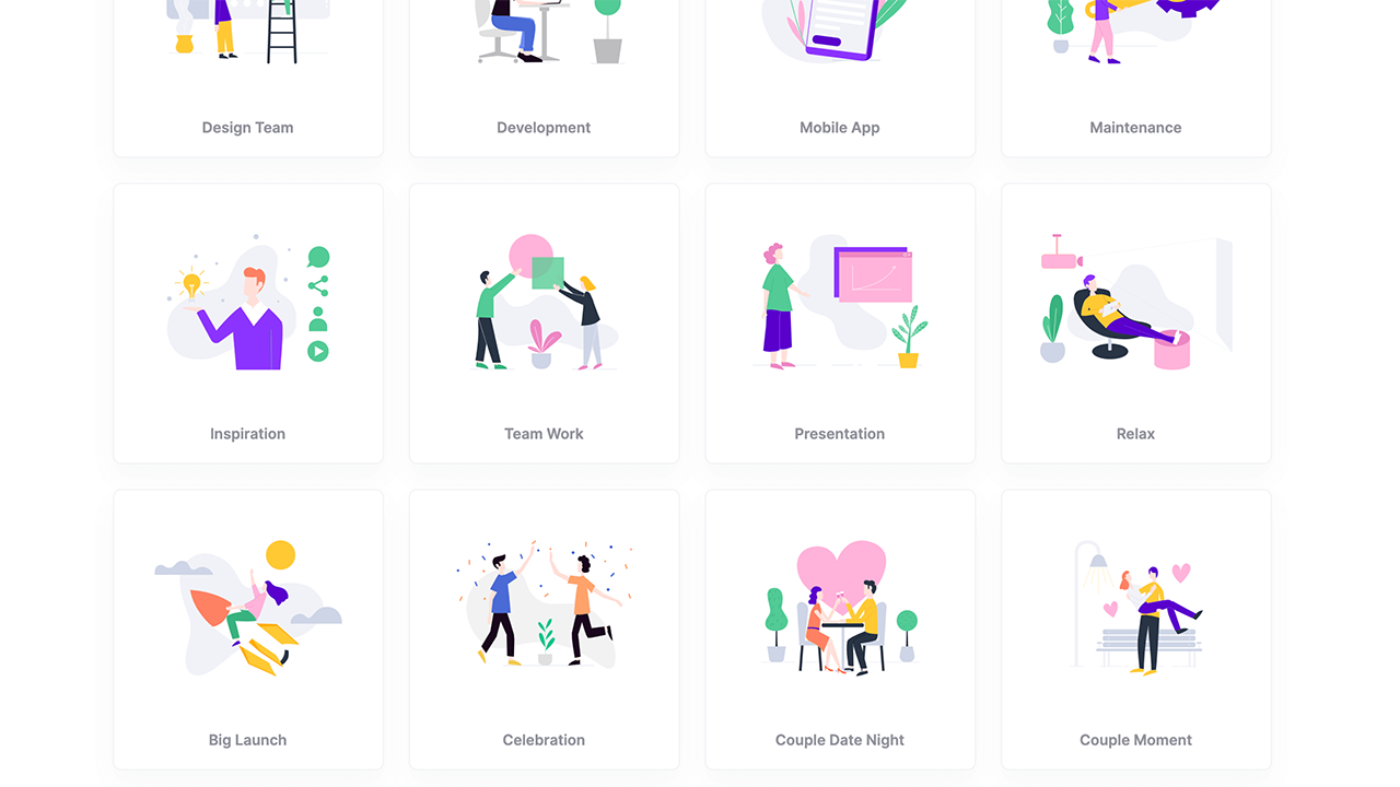 这是一组精心设计的可以使用在Web或移动端项目中的开源矢量插画,这些插画可以让你的项目增添色彩。