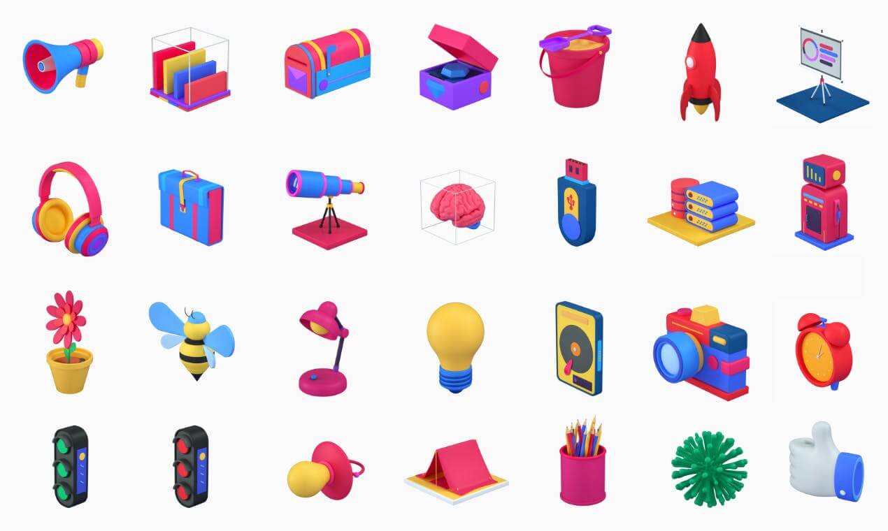 这些3D设计图标使您的项目脱颖而出,可用于移动端的启动页、演示文稿、Web项目等等。