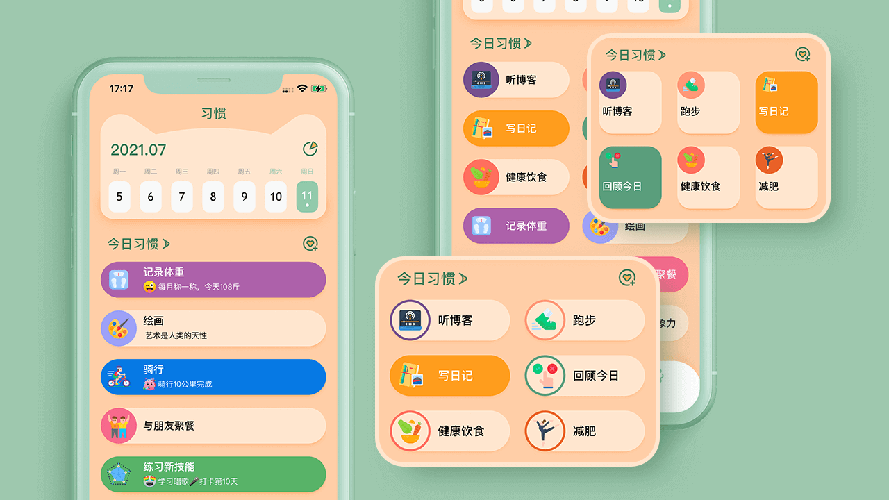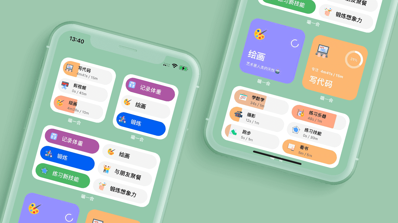 小组件:支持iOS 14 桌面小组件,在桌面一目了然查看专注/习惯的完成情况。
