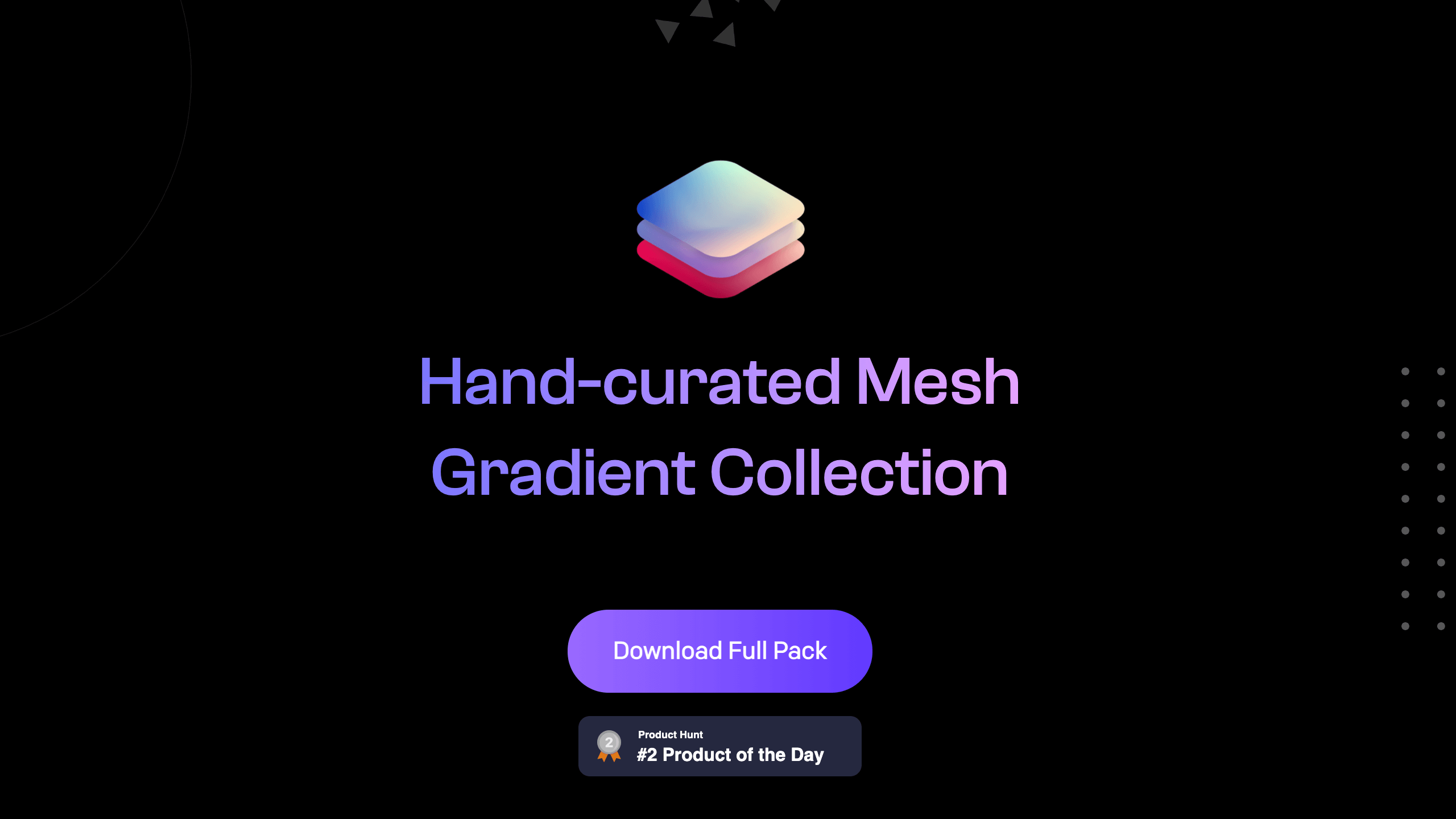 打开网站,可以免费下载100个网格渐变,它曾是ProductHunt上当日排名第二的产品。