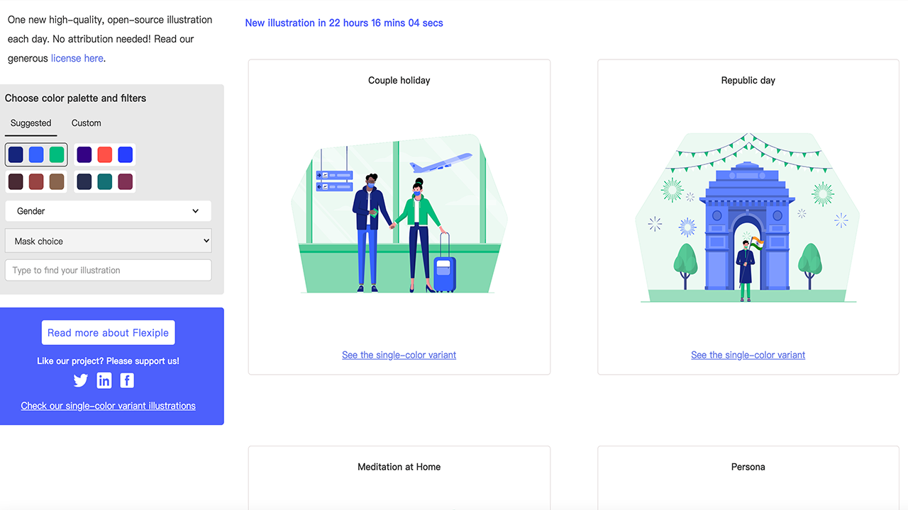 打开网站,可以看到每天一个新的高质量开源插画,无需注明出处,完全免费。