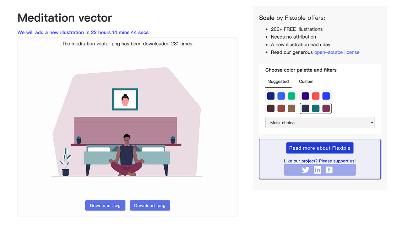点击任意一个插画进入详情页,可以直接下载SVG或PNG格式的插图,非常方便。