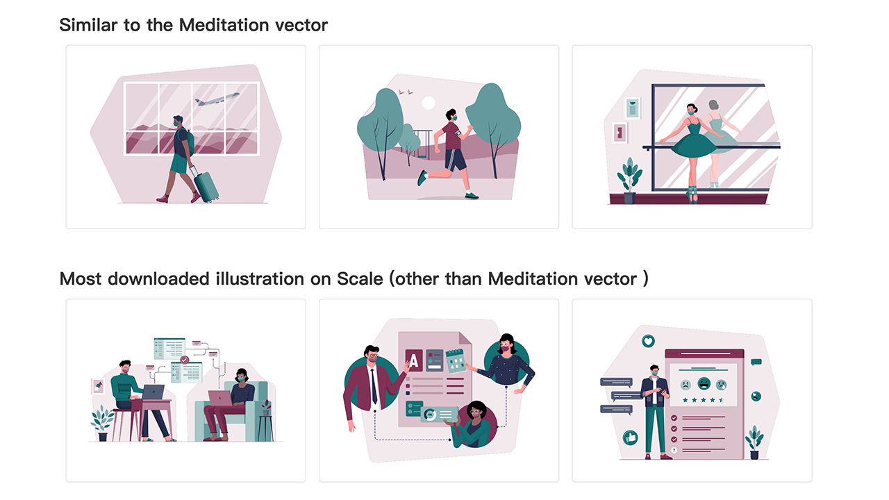 详情页下拉会自动推荐一些类似的插画内容,方便我们下载对应主题的插画。