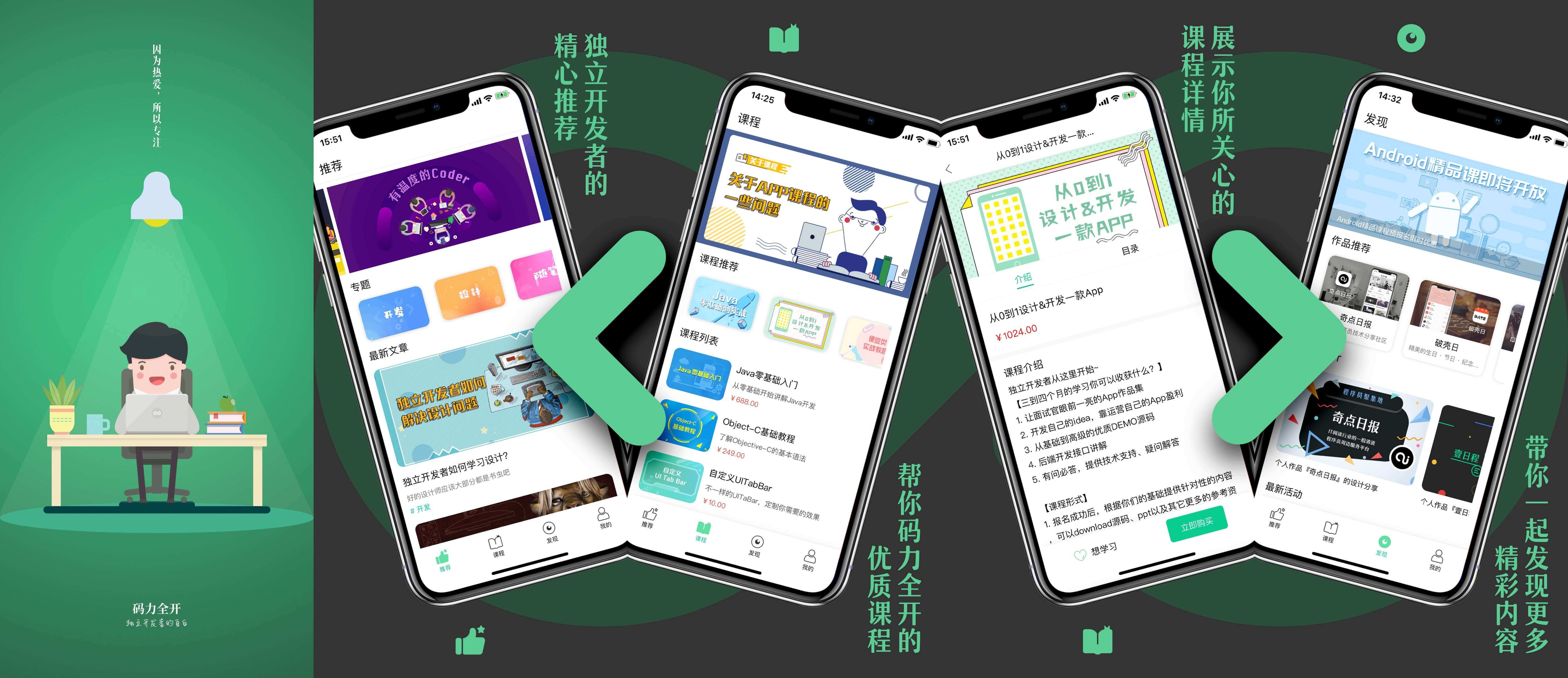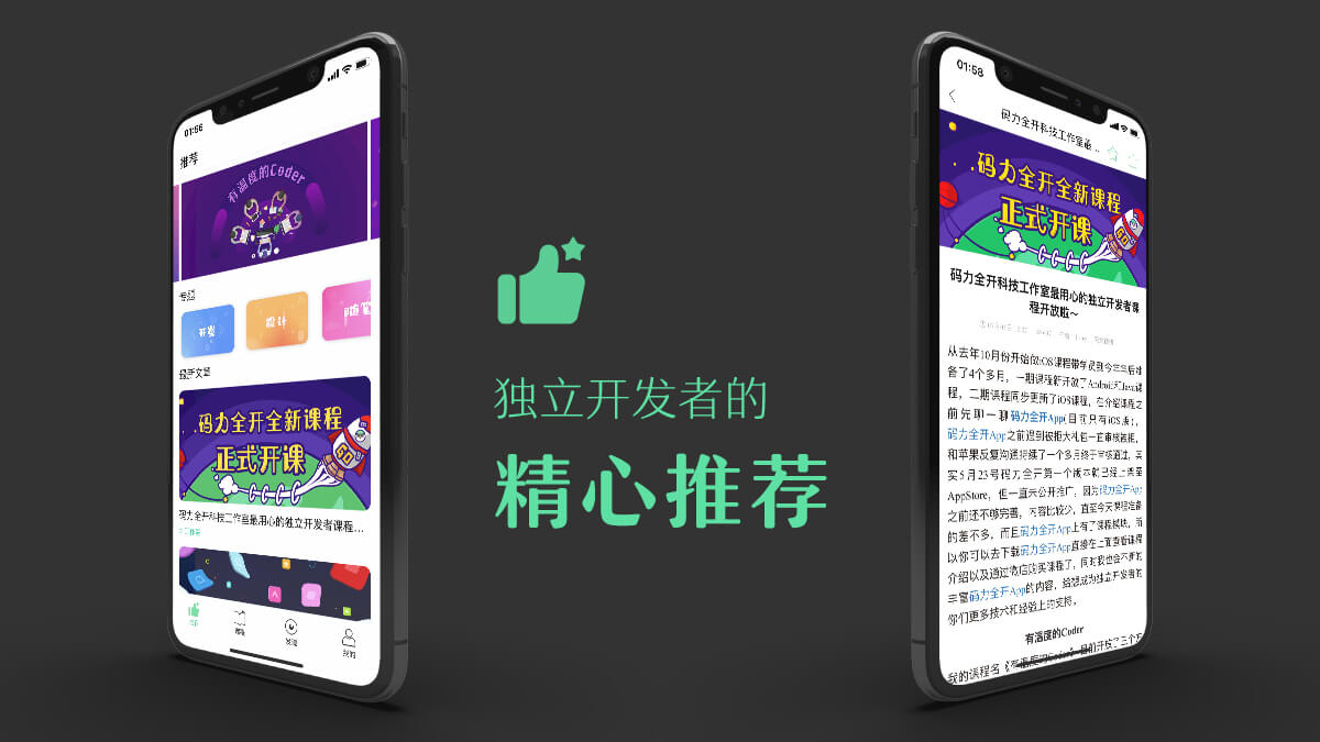 现在码力全开有了App(目前只支持iOS版),你可以直接去AppStore搜索码力全开下载体验,码力全开App的内容主要来源于网站,但也不仅限于网站上的内容,比如设计和课程相关的内容都会在App上呈现,由于App刚上线不久,内容偏少,更多内容还在不断完善中。