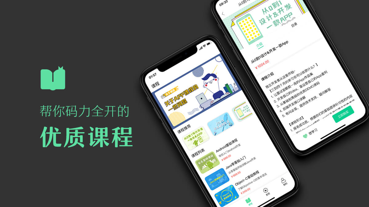 码力全开课程模块主要介绍了iOS、Android、Java三个方向的课程,比如:从0到1设计&开发一款App的课程、Java零基础到实战、Android基础课程、Java零基础入门课程、Objective-C基础教程、实例教程等等,你可以在这里查看课程大纲介绍、课程目录,也可以把课程标记为想学习或者进行购买操作。