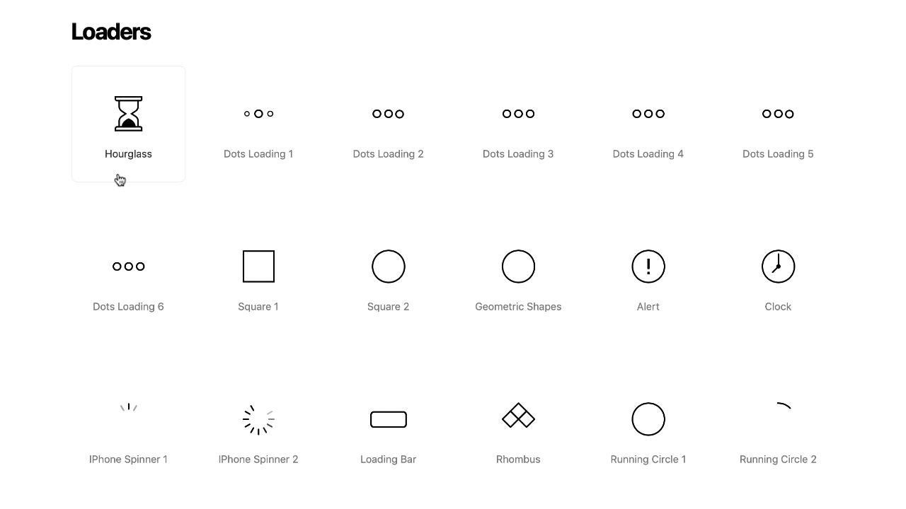 加载的动画图标也非常丰富,可以很方便的用在Web或移动端的页面上。