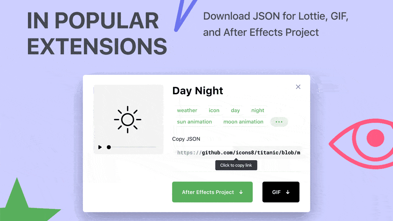 今天推荐的这个Animated Icons 是一组有趣的线性图标合集,可以下载支持Lottie的JSON、GIF和AE格式,就能使用。