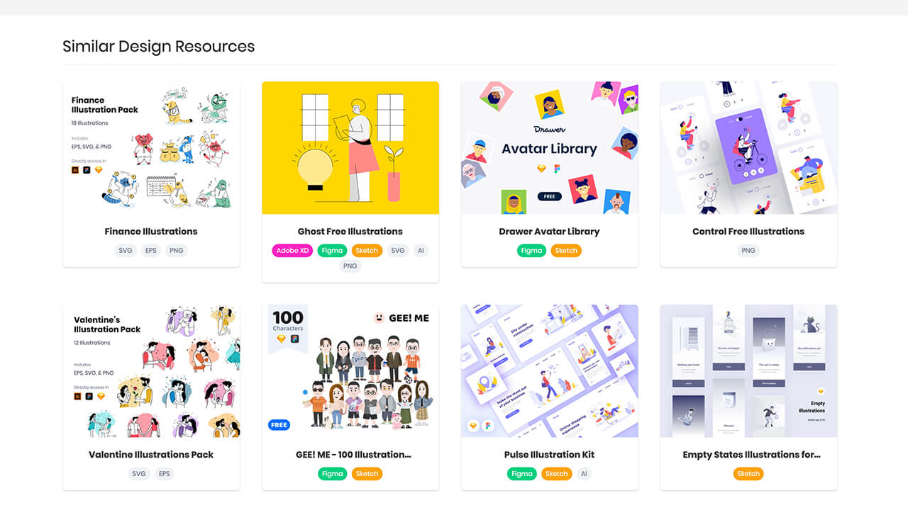 选择插画分类这里提供了31个免费的插画资源,同时该插画资源的底部会提供与此类似的一些插画素材。