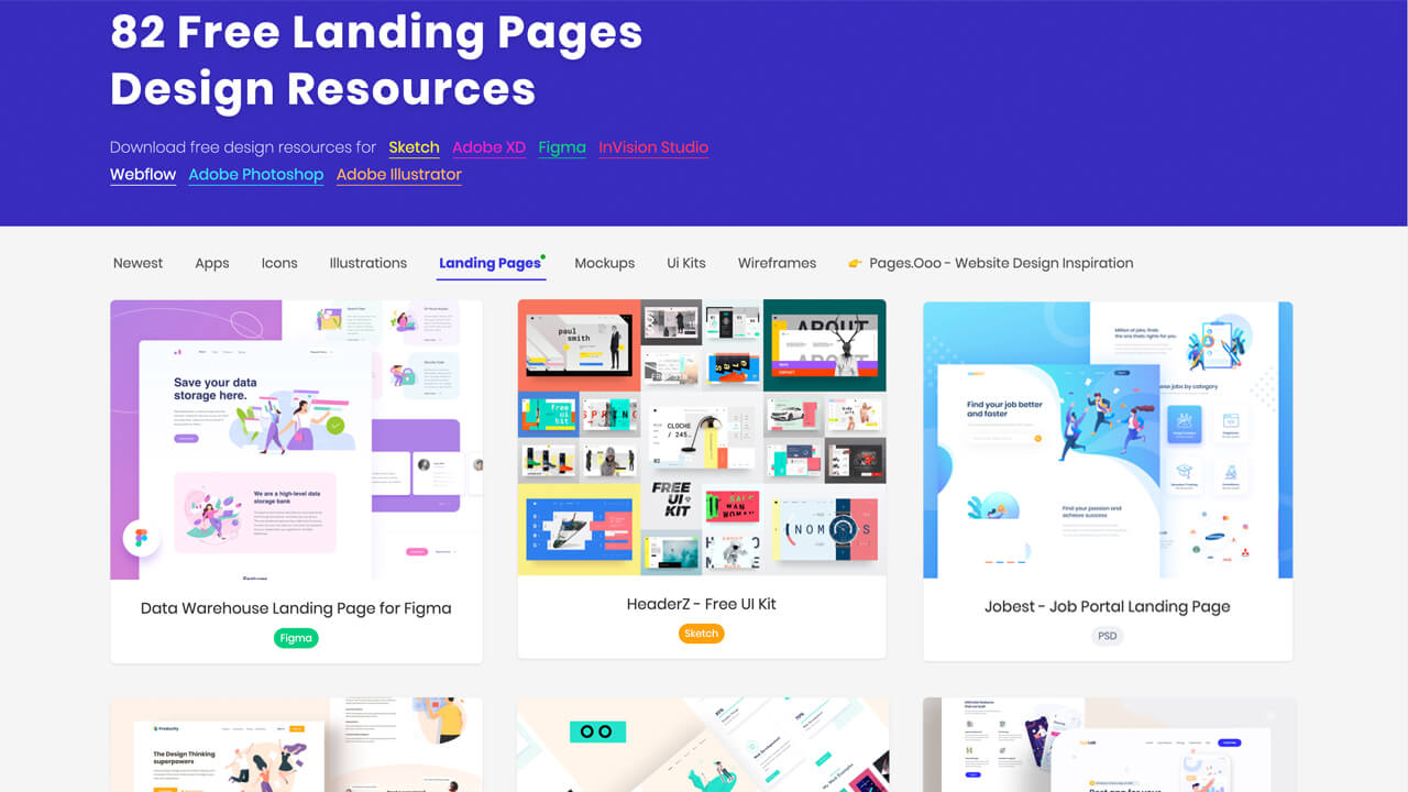 选择网页分类这里提供了82个免费的网页素材,支持不同的格式,比如Sketch、psd、figma等格式。