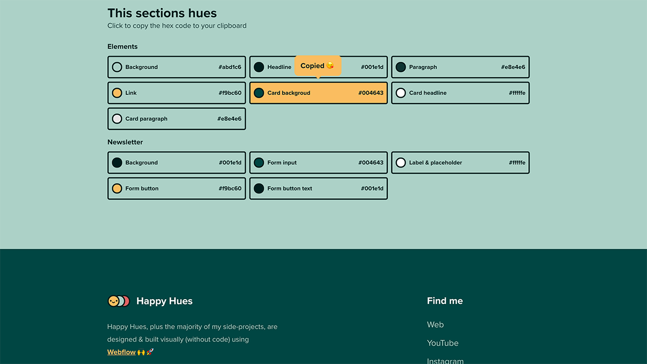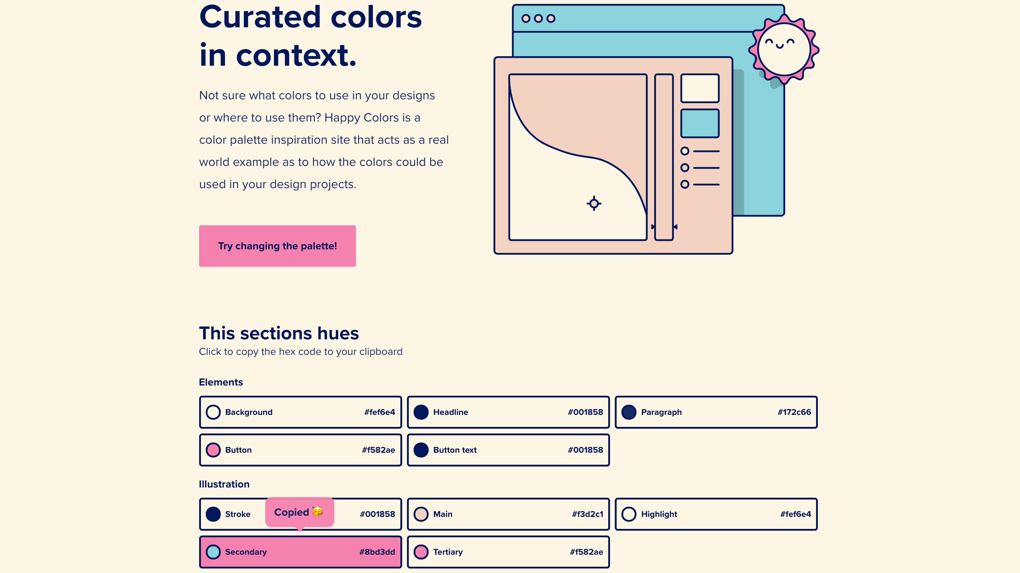 Happy Hues利用案例可视化为我们展示了各种配色效果,喜欢可爱或者小清新风格的设计师千万别错过。