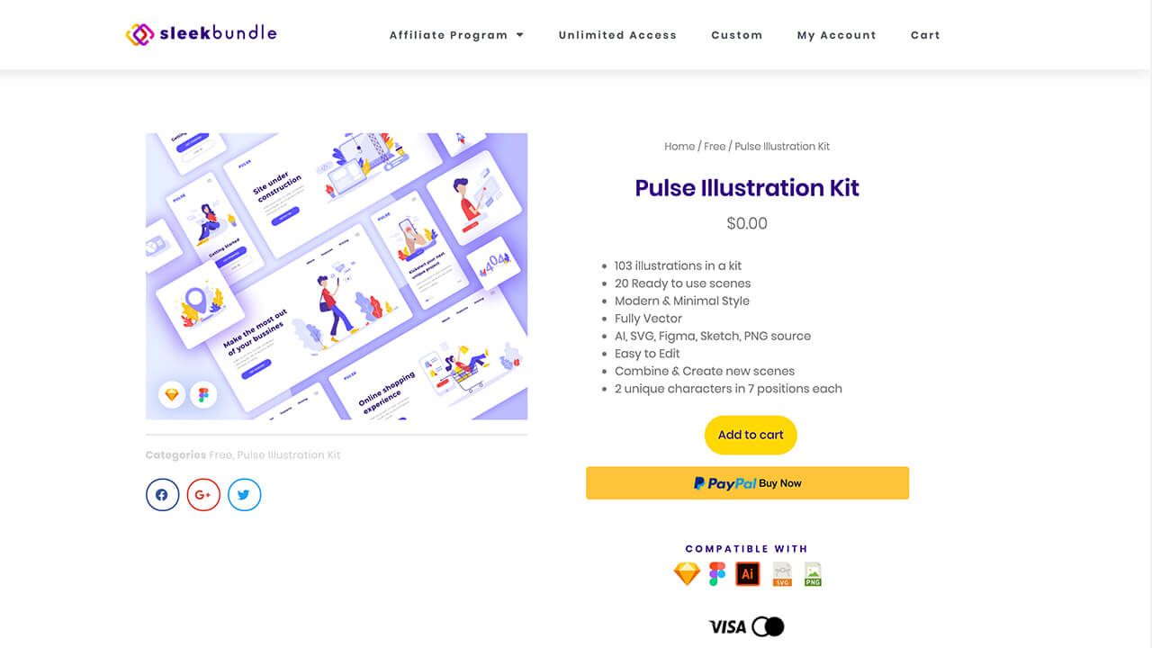 大家好,我是独立开发者Larry~今天给大家推荐一个新发现的插画素材SleekBundle,它提供了很多高质量的插画,网站上的插画有348个、2个套件、5个插图集,插画提供了EPS、PNG、SVG、AI、Sketch、Figma格式,可免费使用Pulse Illustration Kit无需标注出处。
