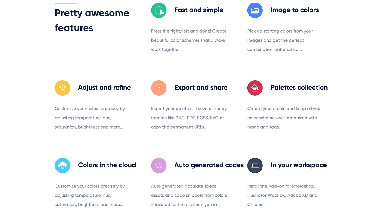 打开网站,在几秒钟内创建、保存和共享完美的调色板,而且它是完全免费的调色板生成器