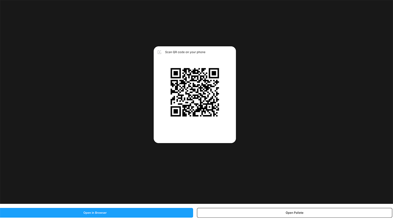点击Web Browser可以看到二维码,使用系统相机即可扫描识别,识别的色值结果可以切换到Open Pallete页面进行查看。