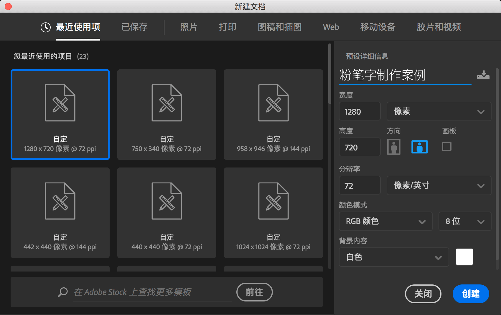 1、打开PS 新建文档command+N 创建宽1280px高720px的画布(画布尺寸大小随你定);