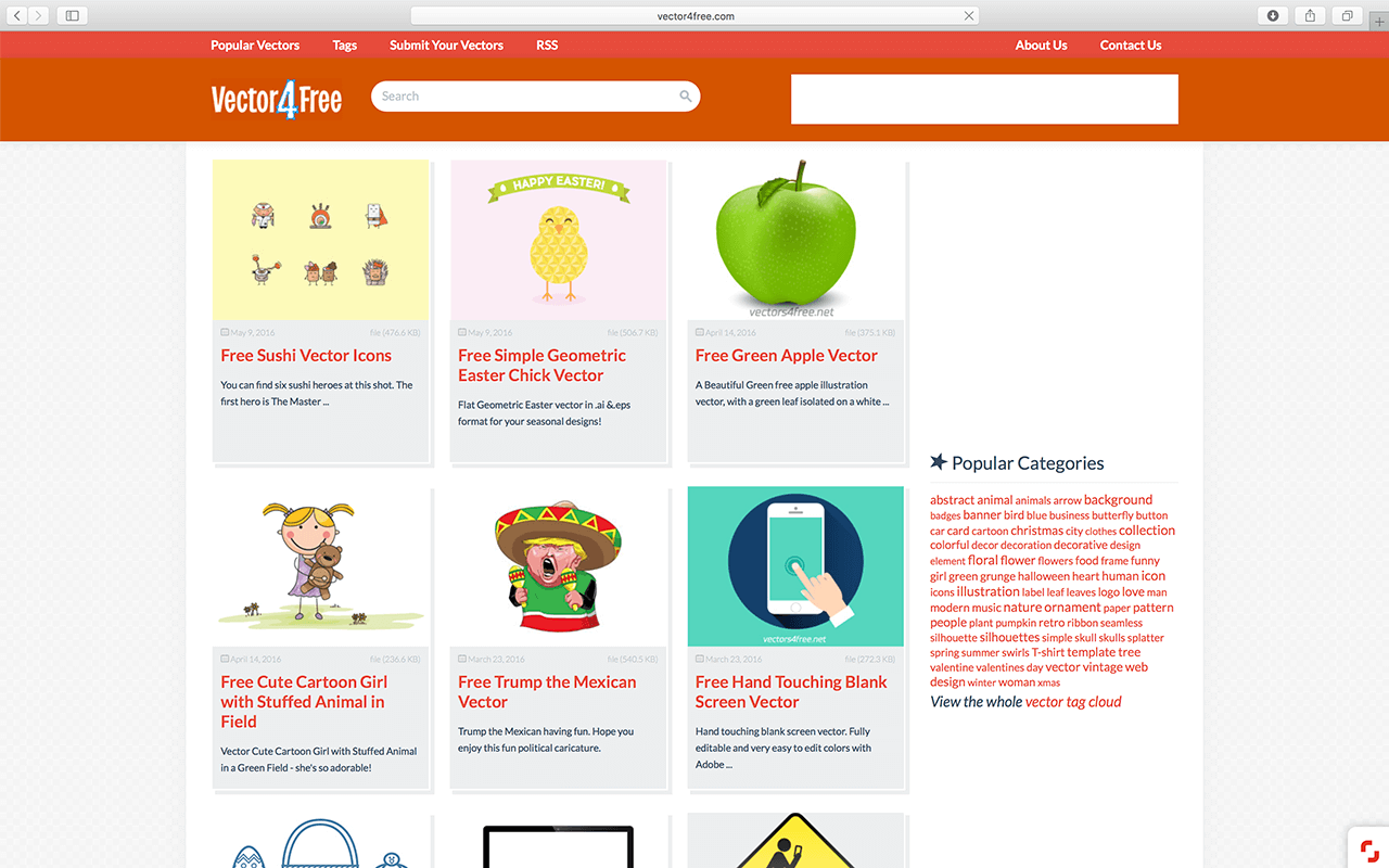 Vector4Free是一个专门提供优质免费矢量素材的网站,文档格式有AI、EPS、PDF、SVG、CDR等,网站内容更新速度快、分类全,方便快速查找想要的素材,另外网站上所有的矢量素材都可以免费提供给个人使用,商业时最好检查授权说明。