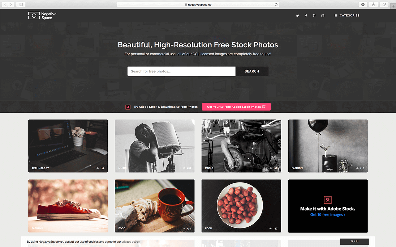 NegativeSpace是一个众所周知的分享摄影作品的图片网站,有大量高分辨率图片供个人或商业使用,照片除按热门标签分类外,还可按颜色分类查找。