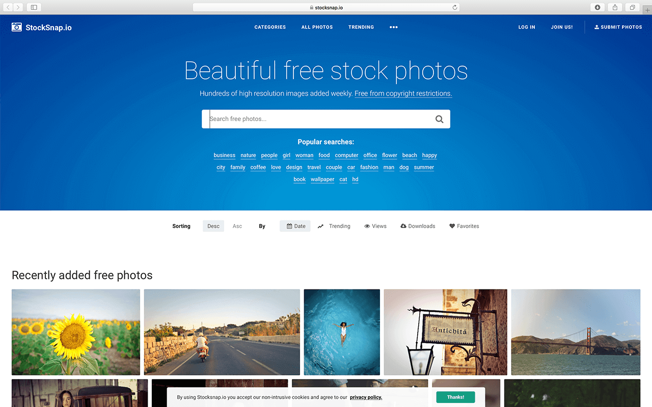 一个图片丰富的资料库,每天都有摄影师上传新的相片到网站,素材更新速度快、图片分辨率高,并且没有版权限制。此外,网站还提供新增日期、趋势、查看次数、下载次数等方式来排序网站内的图片,方便用户浏览下载。