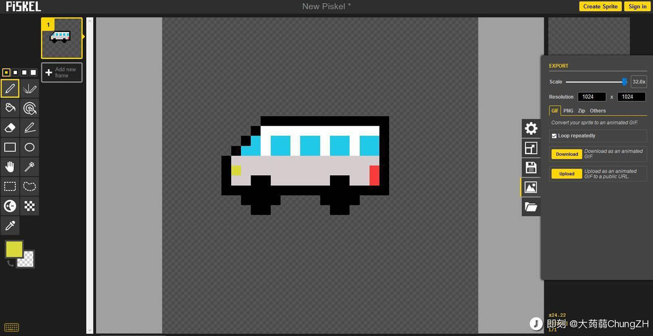 💡piskel - 一个开源的画像素画的网站,最近想入坑像素画,于是就找到了这个玩意——piskel。它是一个开源的工具,可以帮助你画像素画,十分方便。只需要用鼠标在画板里点点就行了。目前该项目主要由 piskelapp 组织维护。